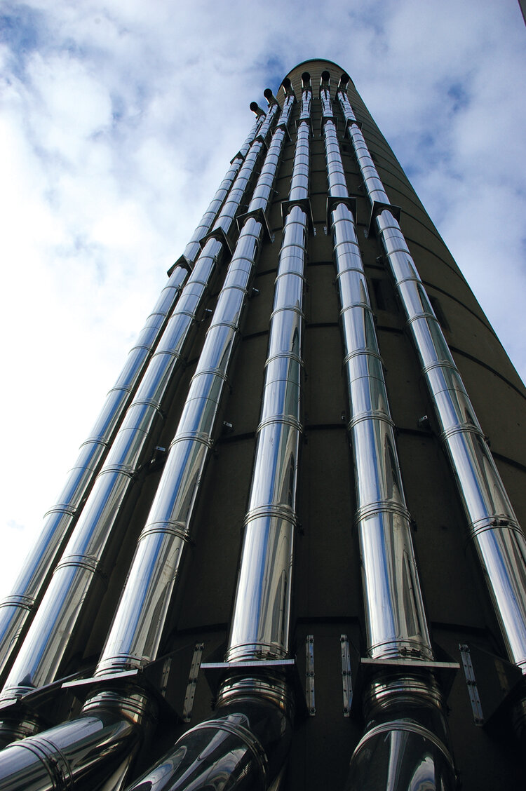 Projektanti musí v návrhu zohlednit výkon spotřebičů, teplotu spalin, tah komína, přetlak, provozní podmínky i požární bezpečnost. Průmyslové komíny Schiedel jim poskytují široké zázemí.