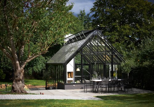 Et privat orangeri i Jylland er blevet et helårssamlingspunkt med ild, hygge og madlavning. Skabt med ISOKERN Living.