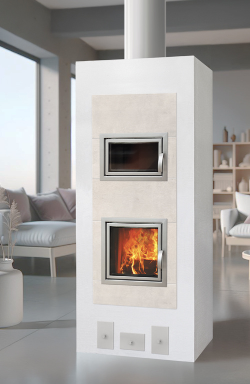 Varaava takka leivinuunilla Fiona on selkeälinjainen varaava takka leivinuunilla, joka lämmittää pitkään ja lempeästi. Tämä tulisija on varustettu innovatiivisella Puupihi-polttoteknologialla ja siihen saa lisävarusteena mm. pellettipolttimen ja korvausilmajärjestelmän, joten se vastaa myös modernin asumisen tarpeisiin.