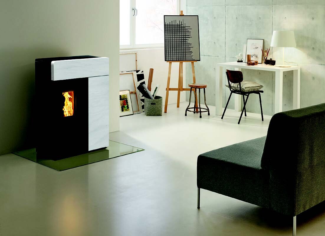 Il canale da fumo di design per stufe a legna, nero opaco per alte temperature senza fascette nè supporti, estetica liscia per impianti a biomassa