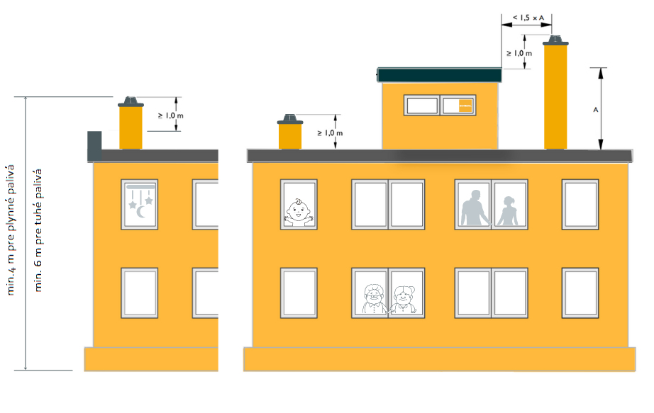 Napríklad, že komín má byť viac ako 4 m nad terénom pre plynné palivá a min. 6m pre tuhé palivá