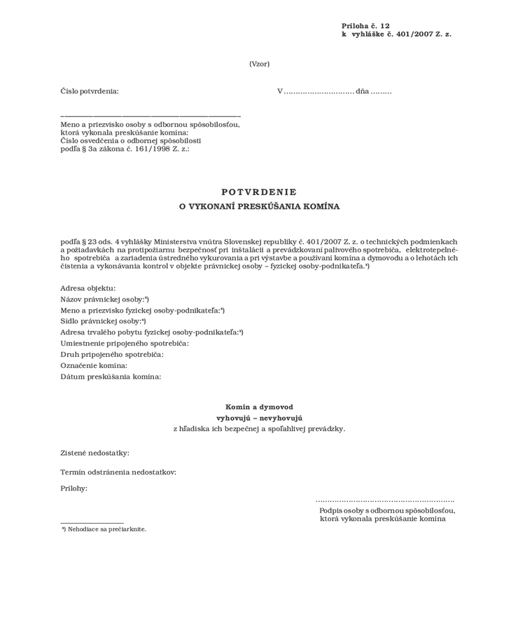 Každý nový alebo rekonštruovaný komín musí pred uvedením do prevádzky skontrolovať revízny technik komínov. Bez platnej revíznej správy komín nesmiete používať. V prípade poistnej udalosti (napr. požiaru) vám poisťovňa bez tohto dokumentu odmietne poistné plnenie.