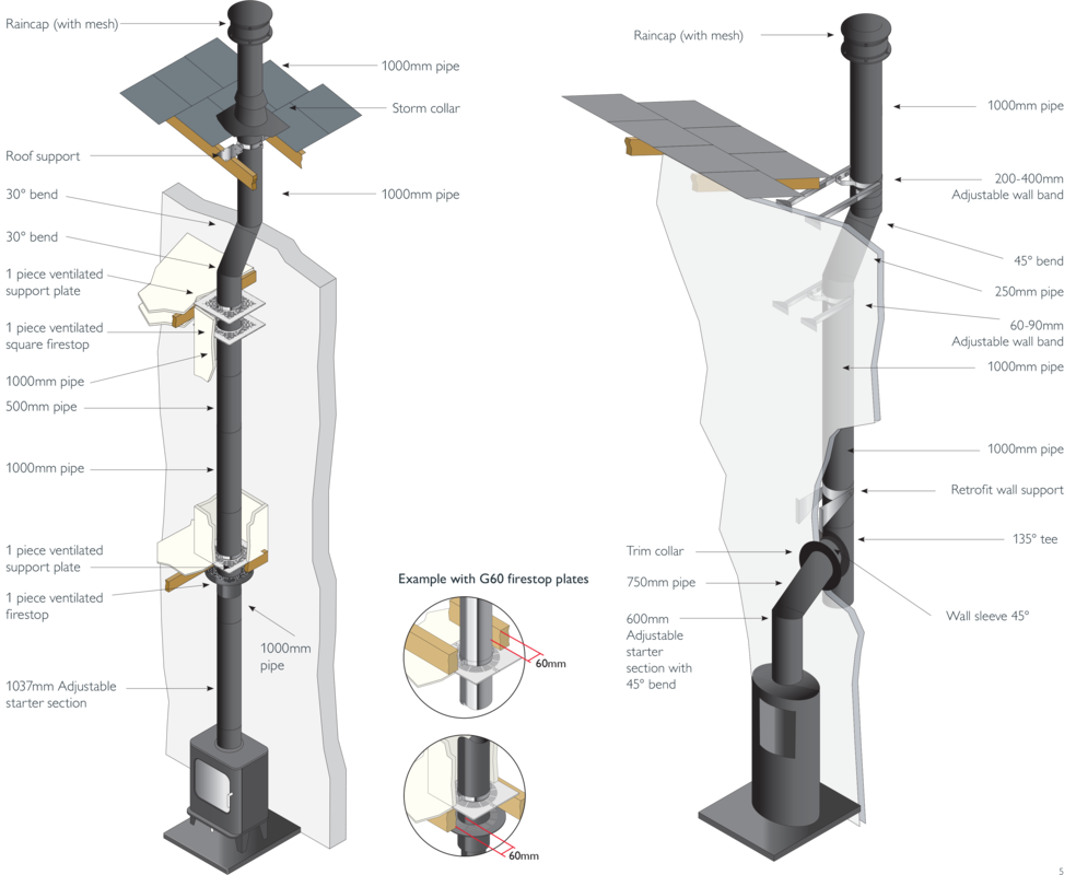 G60 and G50 firestop plates to allow 60mm and 50mm distance to combustibles on internal installations.