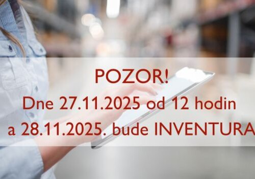 Dovolujeme si informovat naše zákazníky, že dne 27.11. od 12 hodin a 28.11.2025 budou probíhat na našich skladech inventury. V tyto dny tudí...
