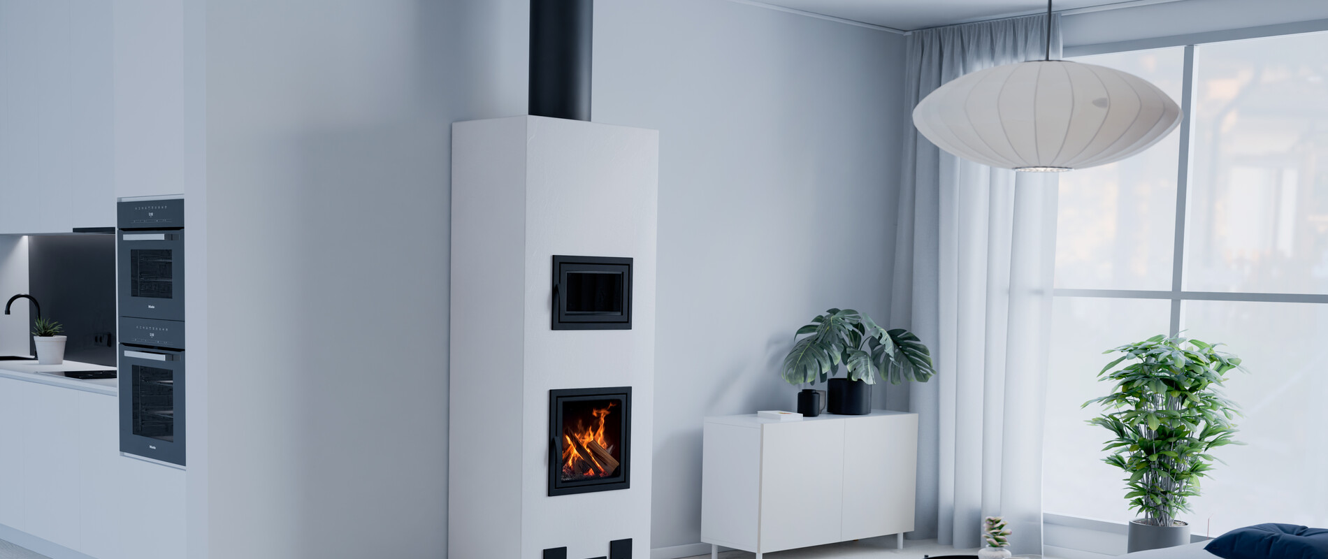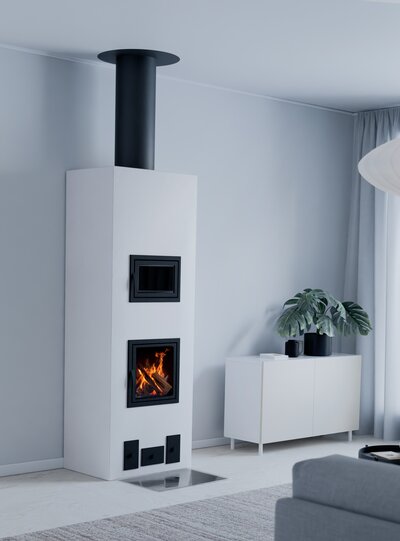 Varaava takka leivinuunilla Fiona on selkeälinjainen varaava takka leivinuunilla, joka lämmittää pitkään ja lempeästi. Tämä tulisija on varustettu innovatiivisella Puupihi-polttoteknologialla ja siihen saa lisävarusteena mm. pellettipolttimen ja korvausilmajärjestelmän, joten se vastaa myös modernin asumisen tarpeisiin.