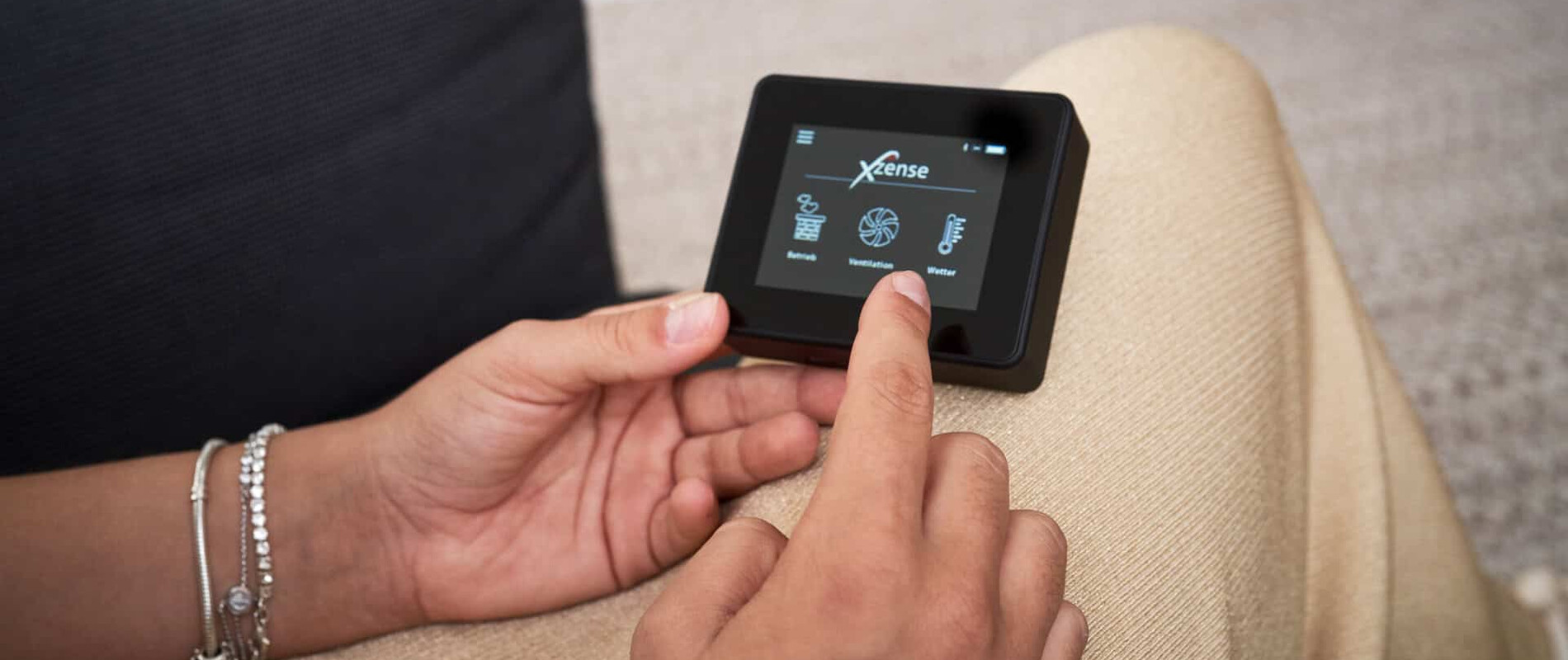 Xzense ohjauspaneelilla (kun käytössäsi on Exodraft-savukaasuimurijärjestelmä) voit hallita täydellisesti takkaasi.
