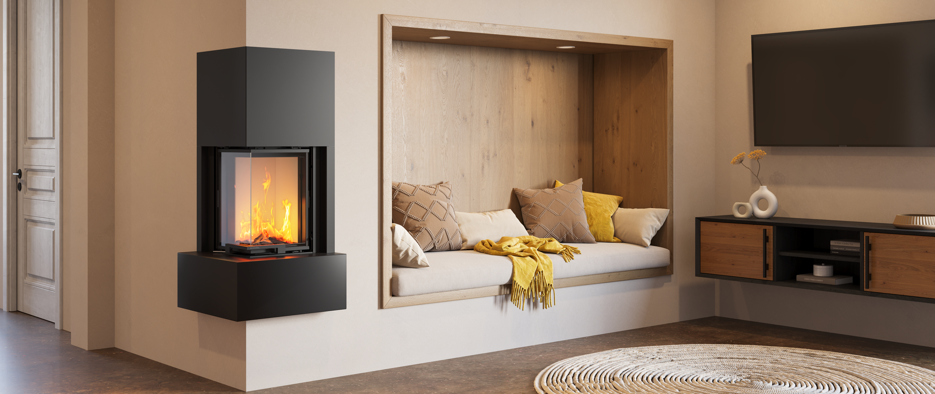 Beépített sarokkandalló fatüzeléshez tolóajtóval, mely a helyiség levegőtől függetlenül üzemel. Kétféle modellvariációban rendelhető: a sima KANTO PLANO illetve a párkányos KANTO PODIO.