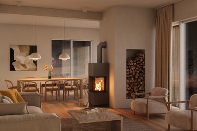 Det rene, elegante designet og dens kvaliteten på materialet gjør Schiedel Fornax til et stilfullt blikkfang i ethvert oppholdsrom. Nyt den behagelige varmen fra Fornax peisovn.