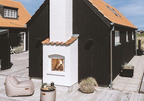 To sommerhus i Skagen har fått unike hagepeiser som er tilpasset husenes klassiske arkitektur. Med hvit skalmuring, røde takstein og forhøye...