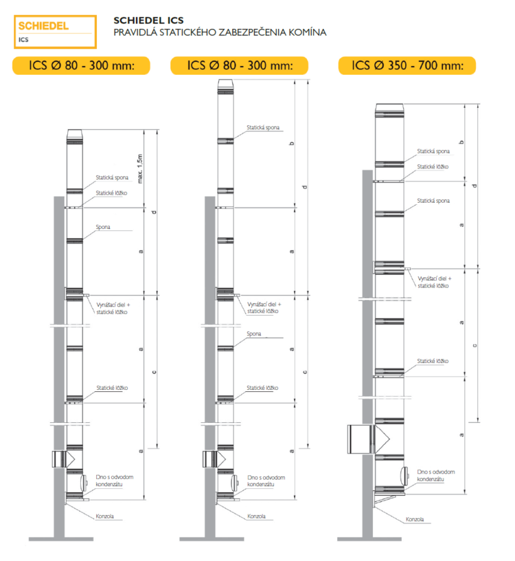 Stavba komína si vyžaduje aj statické zaistenie. Komín musí byť pevne ukotvený o nosnú stenu v intervaloch predpísaných výrobcom (zvyčajne každé 3-4 metre). Rovnako je definovaná aj maximálna voľná výška nad posledným kotvením (1,5 až 2,5m).