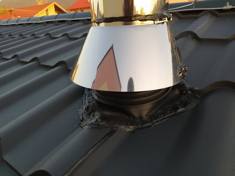 Neuveriteľne častá a nepochopiteľná chyba pri neodbornej montáži. Jednotlivé dielce sa musia skladať tak, aby horný diel bol vždy zasunutý do spodného dielu (platí pre vnútornú vložku). Tento princíp sa označuje ako spoj „po vode“.