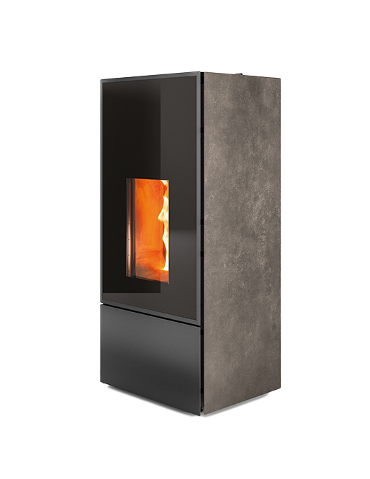 This beautiful stove combines the most innovative operating technologies with a Nordic minimalist design. The cladding is entirely in painted steel (Black and Bronze).